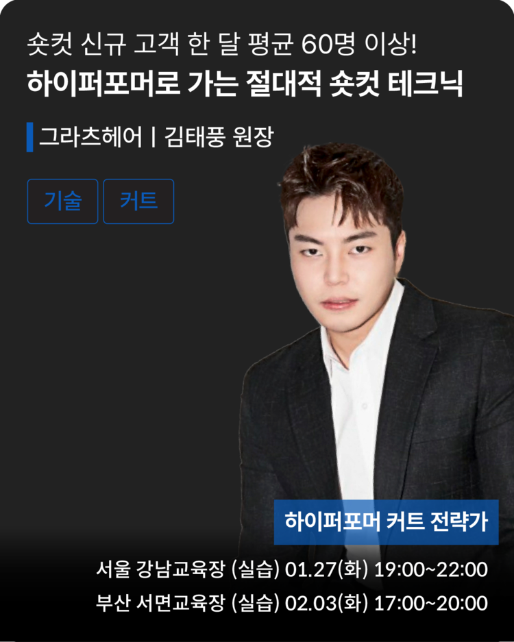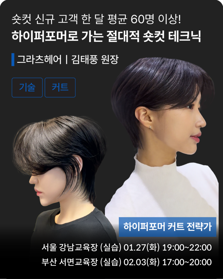 숏컷 신규 고객 한 달 평균 60명 이상! [하이퍼포머로 가는 절대적 숏컷 테크닉]3 <그라츠헤어 김태풍 원장>